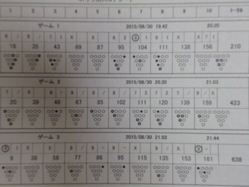 前回の反省点を活かそうと、お盆コンペへ。 10枚目まっすぐと、5枚目まっすぐ。 スペアが上手くいかなくて、腸煮えくり返る。 3G=スペア43%、ストライク16%、アベ149